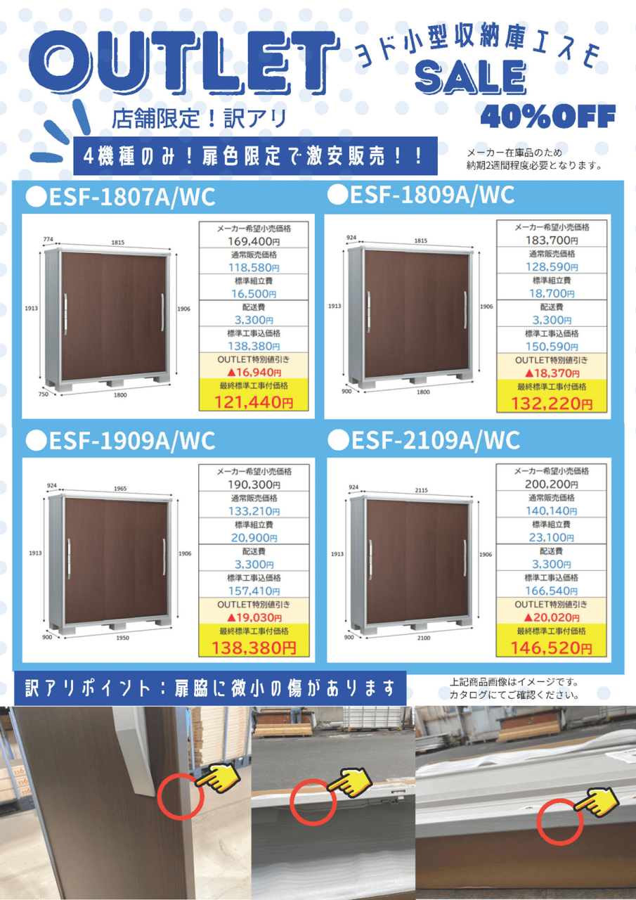 現在ヨド収納庫をサイズ限定で、特別セールを開催しております。